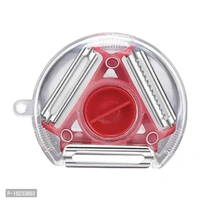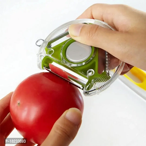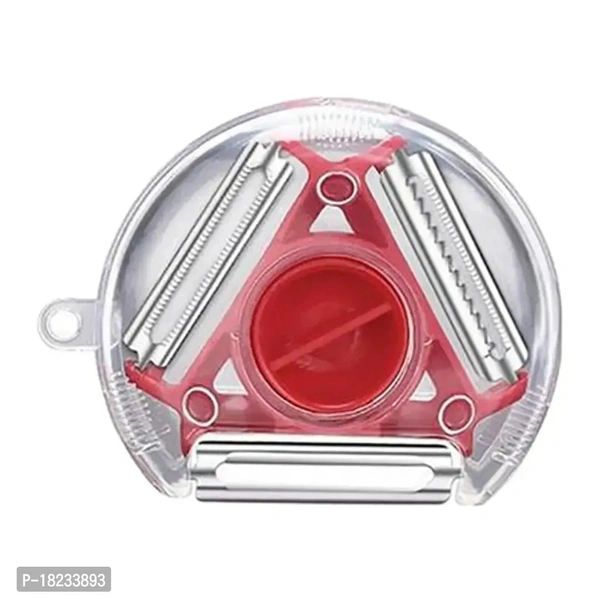 Compact Rotary Peeler, Vegetable Skin Peeler, Serrated Blade for Peeling Skin of Tomatoes, Stainless Steel Blades and Plastic Body, Easy Rotation of Blades Vegetable ; Fruit Slicer.The peeler blades are made of stainless steel, sharp enough and not easy to rust. With the plastic sleeve it will protect your hands. The peeler is designed with three blades. You just need to change the button and you will get three different blades. And each sheet must be applied in the right place. They are respectively responsible for soft skin, hard skin and shred. The handle complies with the ergonomic design so that you still feel comfortable with repetitive movements.